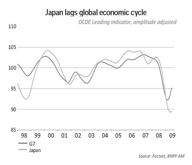 Ve 2. čtvrtletí rostla ekonomika o 0,9 procenta a zaznamenala po čtyřech kvartálech propadu první růst. Přesto ovšem meziročně Japonsko oslabilo o 6,4 procenta. V první čtvrtletí byl meziroční propad ještě propastnější, a to dokonce 8,7 procenta. Za zlepšením je především zahraniční obchod. Export se zvýšil a import klesal.