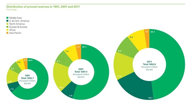 V posledních letech se stále častěji mluví o takzvaném vrcholu v produkci ropy. Podle zastánců této myšlenky má svět maximum produkce černého zlata pomalu za sebou a začne docházet k nedostatku ropy kvůli tomu, že poptávka zároveň roste, zejména na mladých trzích. Jak ovšem ukazuje graf dlouhodobého vývoje zásob ve známých ložiscích ropy, objem "ověřené" ropy roste. Otázkou ovšem samozřejmě zůstává schopnost dodávat surovinu za přijatelné ceny na trhy, kde roste poptávka nejrychleji.