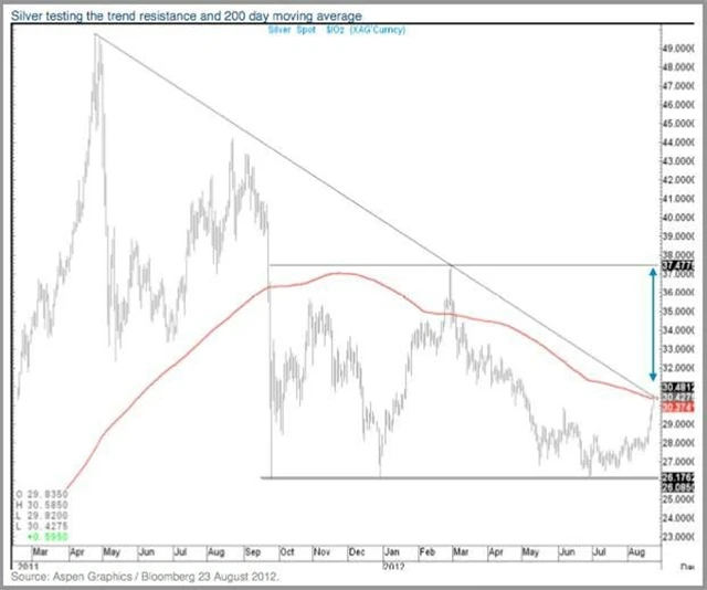 Technický analytik Tom Fitzpatrick ze Citigroup je stále velikým "fanouškem" zlata a ropy, ovšem v jednom ze svých posledních komentářů upozorňuje na to, že technická analýza v posledních dnech výrazně nahrává růstu ceny stříbra.