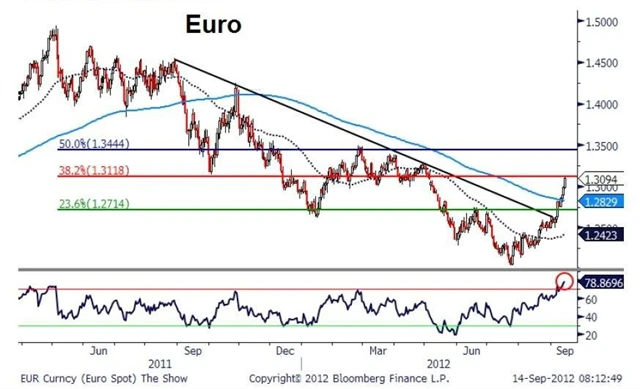 Přeprodanost investičního instrumentu ještě automaticky neznamená, že má investor zmáčknout prodejní tlačítko. Nicméně euro je nyní ještě více přeprodané než při svém vrcholu v květnu 2011. Například akciový index S&P 500 čekal po podobném vrcholu v následujících pěti měsících dvacetiprocentní propad.