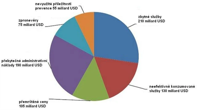 Ve Spojených státech amerických se v roce 2011 utratilo za zdravotní péči celkem 2,6 bilionu dolarů, tedy zhruba šestina celého rozpočtu. Skoro třetina této částky - 750 miliard - nepřispělo k ničímu zdraví. Upozorňuje na to každoroční zpráva amerického Institute of Medicine.