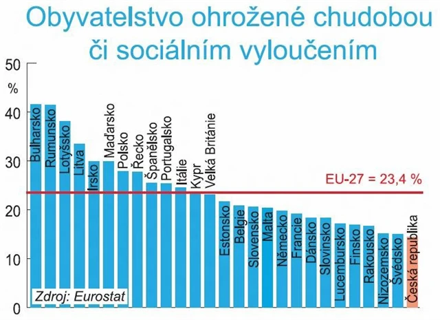 V České republice je v rámci Evropské unie nejmenší podíl osob ohrožených chudou či sociálním vyloučením. Vyplývá to z říjnových údajů Evropské komise. Utahování opasků je fakt, pesimismus - Čechům tak vlastní - ale možná přeháníme.