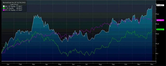 Své doporučení pro akcie Citigroup, Bank of America a Discover Financial Services zvýšila z "držet" na "koupit". Ještě v létě predikovala výprodeje a rizika na straně zisku u velkých amerických bank, v říjnu pak varovala, že finanční společnosti zůstanou pod tlakem kvůli probíhajícím soudním sporům.