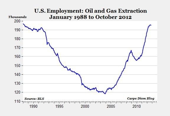 Počet lidí v USA zaměstnaných v sektoru těžby ropy a plynu roste.