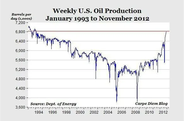 Produkce ropy v USA je nejvyšší od roku 1994.