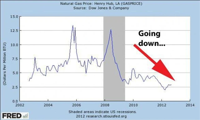 Zeleným energiím nenahrávají ani aktuální ceny zemního plynu. Maximální ceny tato surovina dosahovala v letech 2005 a 2008. Po menších výkyvech v roce 2010 se ale cena plynu drží nízko a i předpovědi pro nastávající roky ukazují na klesající trend konečné ceny energie z tohoto fosilního zdroje.