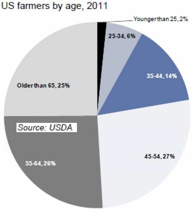 Přesně na to se ve svém ročním výhledu na základě věkové struktury amerických farmářů zeptal Jeff Gundlach, uznávaný investor a šéf společnosti DoubleLine Capital. Je otázka, zda se v USA vzedme vlna zájmu o tento obor (muselo by se to vyplatit více než dovoz obilí a dalších plodin ze zahraničí).