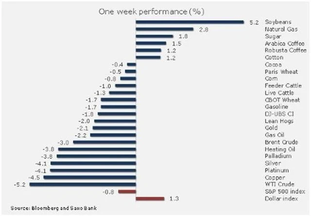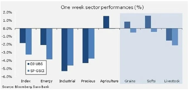 Horší výkonnost většiny zemědělských komodit – a následně i kovů – v posledním měsíci se v uplynulém týdnu rozšířila i na komodity závislé na hospodářském růstu. Zasažena byla energetika a průmyslové kovy. Méně se dařilo také stálicím, jako jsou ropa Brent, platina nebo měď. Investoři totiž začali omezovat dlouhé pozice.