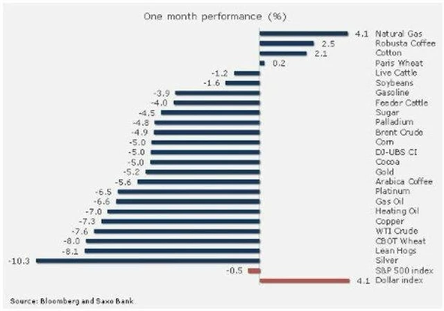 Následně horší výkonnost a prodeje ze strany investorů zasáhly vzácné kovy. Ty přitom s nepřízní bojují již několik měsíců. Nikoho tedy nepřekvapí, že se na zlato nalepila nejhorší série měsíčních ztrát od roku 1997. Korekce zasáhla i komodity závislé na hospodářském růstu, tedy například průmyslové kovy a energetiku. Očekávání budoucího růstu a poptávky se totiž až diametrálně liší od současných fundamentů.