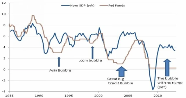Tři velké bubliny posledních 20 let měly jedno společné - příliš nízké sazby Fedu v době, kdy jim neodpovídal stav ekonomiky.
