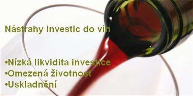 Na druhé straně přináší investování do vína řadu rizik. Jedním z nich je omezená schopnost zpeněžení investice - tedy likvidita Investor také musí vážně přemýšlet o prodeji a uskladnění. A samozřejmě je hrozbou také omezená životnost této alternativní investice.