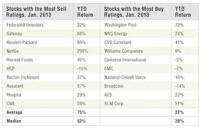 Lepší výkon akcií, které Wall Street nenávidí, není žádnou novinkou. Padesátka akcií s nejhorším hodnocením analytiků z Wall Street podle agentury Bloomberg na konci roku 2011 předehnala v následujícím roce S&P 500 o 7 procentních bodů.