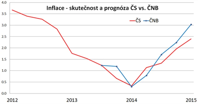 Důvodem pro intervence byl pokles inflace mimo cílované pásmo, respektive výhled ČNB, že se inflace dostane na začátku roku 2014 až na nulu. S tímto výhledem inflace souhlasíme.