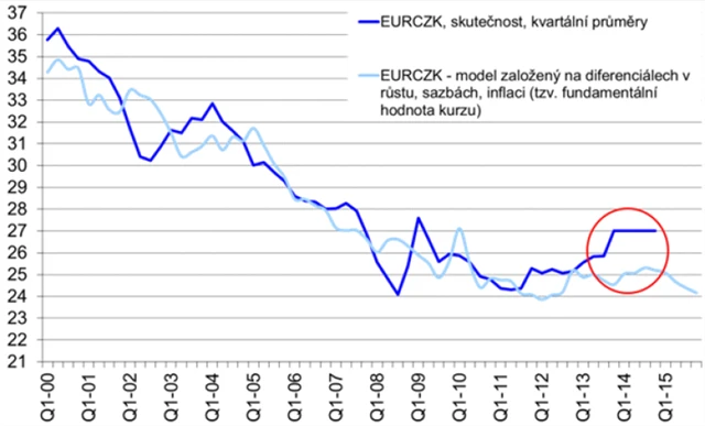 Fundamentální hodnota koruny je zhruba 25 EUR/CZK. Koruna tak po skončení intervencí bude posilovat zpět k 25 EUR/CZK.
