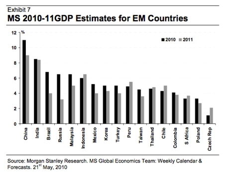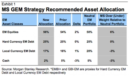 Americká banka Morgan Stanley v posledním reportu doporučuje nadvážit pozice u akcií z mladých trhů, které v posledních několika týdnech zažily velký odliv peněz. Analytici z Morgan Stanley tak radí zvýšit podíl akcií vůči neutrálně postavenému modelovému portfoliu z 2 na 6 procent.
