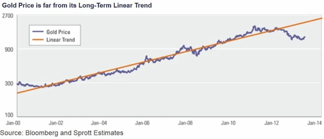 Taková jsou fakta. Můžeme se ovšem ptát, co se na komoditním trhu stalo, že se investoři od zlata začali hromadně odvracet, a jaká budoucnost vlastně kov čeká. Dlouhodobý lineární trend naznačuje, že by se aktuálně zlato mělo obchodovat nikoli za 1 300 USD, ale za 2 100 USD za trojskou unci a na konci letošního roku za 2 400 USD za trojskou unci.