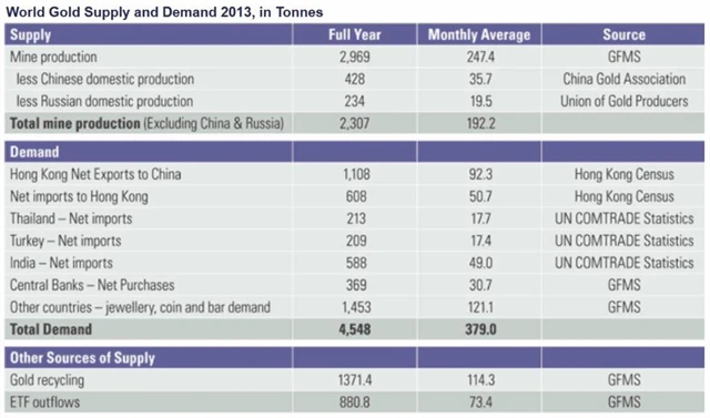 Sprott dále upozorňuje na nesoulad mezi vývojem ceny zlata a globální poptávky a nabídky po tomto kovu. "Pokud se podíváme na celosvětové údaje, je na první pohled jasné, že poptávka po fyzickém zlatě výrazně převyšovala nabídku, což by jeho cenu mělo tlačit nahoru, nikoli dolů," vysvětluje.