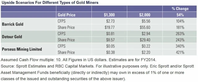 Jsou-li spekulace o manipulaci komoditních trhů alespoň zčásti pravdivé, jedná se o skandál obřích rozměrů. Na druhou stranu se však investoři podle Sprotta v takovém případě mají nejen letos na co těšit. Odhady, které tvrdí, že by se dnes cena zlata měla pohybovat minimálně kolem 2 100 USD za trojskou unci, totiž implikují, že se komodita prodává přibližně s 62% slevou, a současně naznačují, že by akcie těžařských společností mohly v relativně krátkém časovém horizontu teoreticky zdražit o 180 až 420 %.