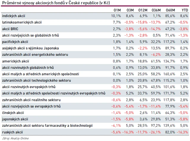 V jejím důsledku pokračovala smolná série ruských akciových fondů. Hlavní index ruské burzy RTS uzavřel měsíc se ztrátou 3,3 %. Relativně hůře se vedlo také akciovým indexům v západní Evropě. Překvapením se naopak stal turecký trh, který nečekaně smazal ztráty, které zaznamenal během prvních dvou měsíců roku. Dobře se vyvíjely také burzy v Latinské Americe, které investorům často vydělaly více než 10 %. Výrazný růst jsme mohli sledovat také u zemědělských komodit, naopak u zlata jsme po růstu na začátku roku zaznamenali korekci (pokles o 2,8 %). Pozitivně se ve výsledcích řady investičních fondů odrazilo také oslabení české koruny vůči cizím měnám.