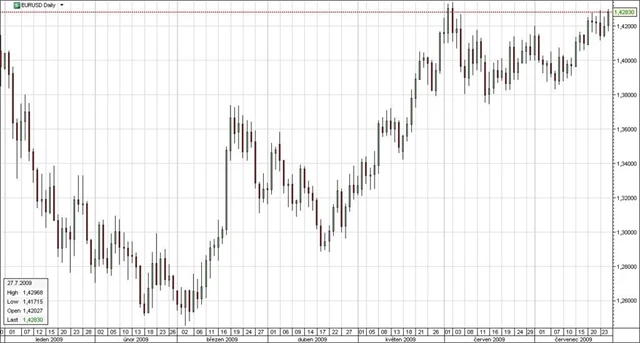 Americký dolar těžil z návratu k riziku na přelomu června a července. Nyní se však potýká s tím, kterým směrem se vydat a vypadá to, že přes léto se významných pohybů nedočkáme. Akciové trhy prolomily hlavní úrovně rezistence a vydaly se vzhůru, dolar však má ještě dlouhou cestu ke klíčové úrovni 1,3725. Pokud má začít významněji posilovat, je zdolání této hodnoty důležité.