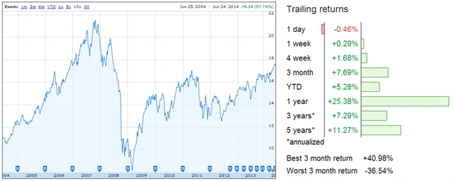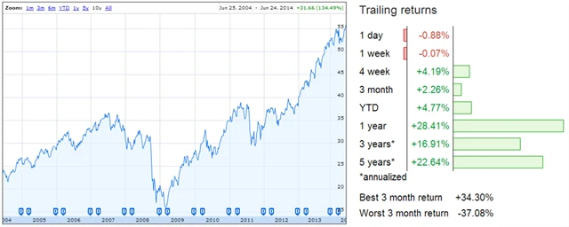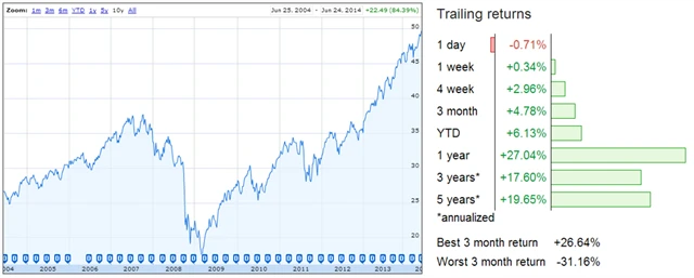 Vanguard Total Stock Market Index Fund (VTSMX) tvoří takřka polovinu portfolia důchodového fondu Vanguard Target Retirement 2025 Fund (VTTVX). Potěší zejména ty investory, kteří jsou dlouhodobě nakloněni americkým akciím. Fond kopíruje kurzy všech akcií obchodovaných na NYSE a Nasdaqu, v čele s cennými papíry společností Apple, ExxonMobil a Google. Ukazatel P/E dosahuje průměrné hodnoty 20,2. Příznivé jsou náklady na obhospodařování fondu, které dosahují pouze 0,17 % jeho celkového majetku.