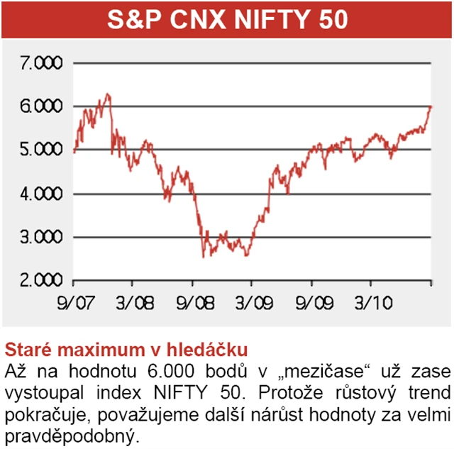 Indická burza se v poslední době předvedla v lepší náladě. Hlavní index NIFTY 50 posílil za rok téměř o 20 procent a nachází se v intaktním růstovém trendu. Fundamentálně je však trh o poznání dražší než ten čínský. Aktuální poměr P/E je roven přibližně osmnácti. Takové ocenění opravňuje silný a asi i dlouhodobě udržitelný růst.