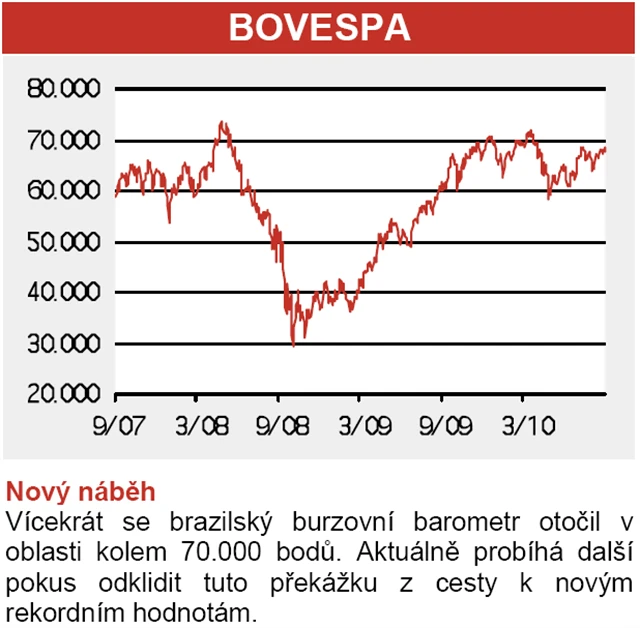 Vůdčímu akciovému indexu BOVESPA se nicméně ještě nepodařilo překonat stará maxima z roku 2008. Fundamentálně je trh oceněný výhodně: P/E se pohybuje na úrovni dvanáct.
