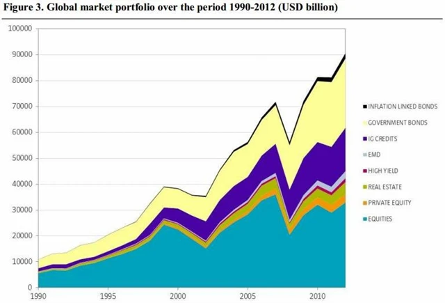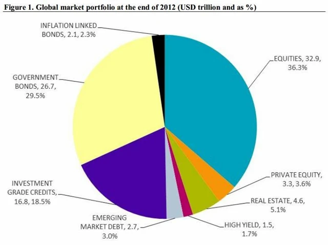 Vezměme si například studii, která představuje koncept světového tržního portfolia aktiv The Global Multi-Asset Market Portfolio 1959-2012 z ledna 2014. Autory jsou Ronald Q. Doeswijk ze společnosti Robeco, Trevin W. Lam z Rabobank a Laurens Swinkels z Erasmus School of Economics & Norges Bank Investment Management. Globální tržní portfolio ukazuje, jak jsou zainvestované peníze globálně v rámci jednotlivých tříd aktiv.