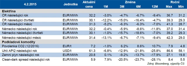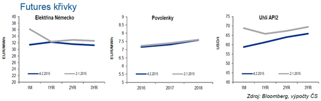 Pro elektřinu v Evropě by v nadcházejícím měsíci měl být důležitý příchod chladnějšího počasí a zlepšení v Německu. Hlavní událostí by pak mělo být 24. února hlasování výboru Evropského parlamentu pro životní prostředí o takzvané stabilizační rezervě na trhu s emisními povolenkami. Tomu bude 6. února předcházet neformální jednání na úrovni vlád. Ohledně MSR jsme spíše optimističtí a čekáme postupný růst cen povolenek i návazně cen elektřiny v rozmezí 1-2 EUR/MWh.