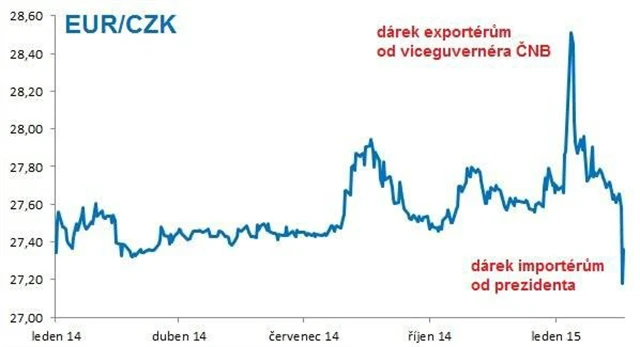 ČNB v příštích měsících těžko vzdá svůj závazek držet EUR/CZK nad 27 jen kvůli slovům prezidenta Miloše Zemana o nejmenování radních, kteří budou chtít devalvovat českou měnu. Současný vychýlený trh je dobrou příležitostí pro nákup eur. Pro importéry byla Zemanova slova podobným dárkem, jaký dostali exportéři v lednu od ČNB k prodeji eur nad 28 EUR/CZK. Exportéři by nyní měli být připraveni, až přijde nová příležitost zase pro ně. Ale pozor na příliš ambiciózní očekávání, úrovně EUR/CZK nad 28 už nemusejí přijít.