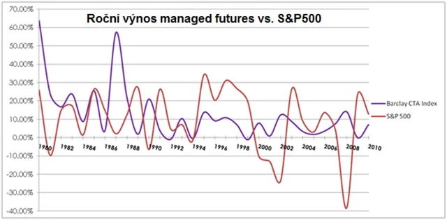 Jednou ze silných stránek managed futures je jejich nízká volatilita, která je zapříčiněna schopností široké diverzifikace. Index Barclay CTA zahrnující 533 programů managed futures (2010) vykazuje v porovnání s indexem S&P 500 konzistentní růst bez významnějších propadů.