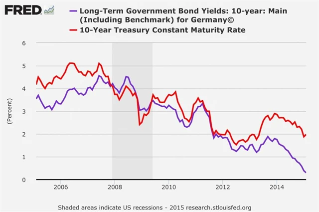 Podle Grosse by německý 10letý výnos měl později "napravit" divergenci, která vznikla mezi vývojem amerických a německých výnosů.
