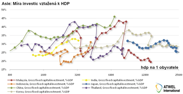 U Indie a Indonésie tedy zatím nelze pozorovat investiční bublinu, Čína bude muset zpomalit svoje tempo investic zpět pod 40 %, jinak dojde k přehřátí.