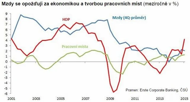 Dynamika mezd má pákový efekt, protože výrazně ovlivní také úrokové náklady a to, za kolik budeme měnit eura za koruny. Rychlejší růst mezd je to, co chybí ve skládačce Janet Yellenové a spol. k tomu, aby se americká centrální banka odhodlala ukončit období minimálních sazeb v Americe. Rychlejší růst mezd by vedle růstu úvěrů znamenal úspěch v resuscitaci inflace v eurozóně pro Maria Draghiho. Guvernér ČNB Miroslav Singer a jeho družina prohlašují, kudy chodí, že si bez zrychlení růstu mezd nemohou odškrtnout kolonku "mise oživení inflace splněna" a vycouvat z kurzového závazku na 27 EUR/CZK.