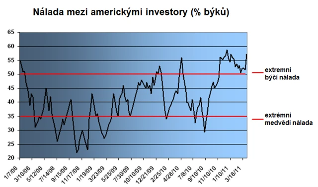 Optimismus mezi investory se podle posledního průzkumu (Investor's Intelligence sentiment) posunul do extrémních býčích hodnot. Průzkum ukazuje, že se investoři velmi rychle oklepali z negativních faktorů na trhu, především z následků japonského zemětřesení.