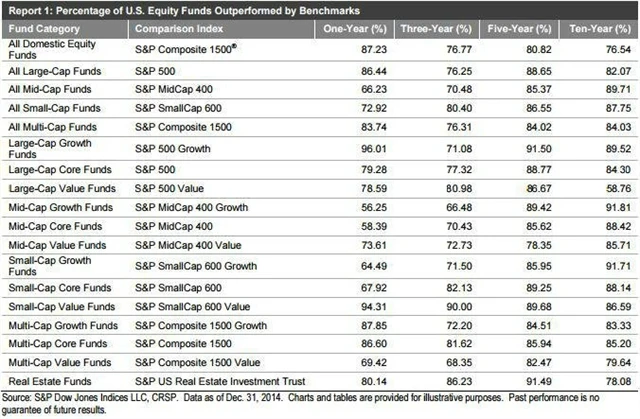 Dalším oblíbeným zaklínadlem aktivních správců je tvrzení, že určité množství jejich fondů překonalo index "ve dvou a více časových úsecích", například od začátku roku, na ročním, tříletém, pětiletém a desetiletém horizontu. Ve dvou a více časových úsecích může znamenat i to, že prakticky žádnému fondu se to nemuselo povést ve více než třech případech z pěti.