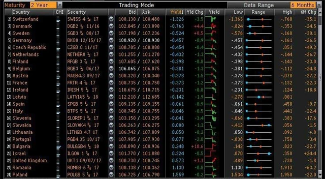 Se zápornými výnosy se koncem listopadu obchodovaly dluhopisy v celkové hodnotě 6 bilionů USD. Německý a český dluhopisový trh je už v záporu šest let, nizozemský pět, francouzský čtyři a irský tři. Podle Bank of America se dnes s výnosy pod 1 % obchodují dluhopisy v hodnotě 17 bilionů USD, včetně většiny japonského trhu se státními dluhopisy.