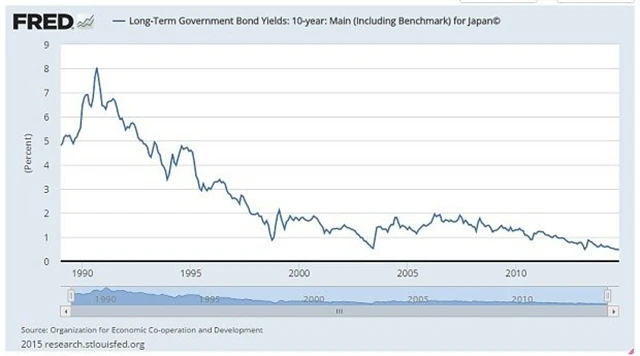 Lekce z Japonska by neměly být brány na lehkou váhu. "Investiční hřbitovy" jsou plné náhrobků portfoliomanažerů, kteří sázeli proti japonským dluhopisům. Dvacet let tiše přihlížejí volnému pádu 10letých výnosů, které na nová minima (0,24 %) spadly letos v lednu.