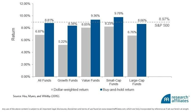 Je to smutné, ale přesně takhle to funguje. Nejlepším způsobem, jak poznat investora amatéra nebo nezkušeného profesionála, je zjistit, jak velký důraz a váhu připisuje 12měsíční výkonnosti. Tato posedlost tím, že si vybíráme na první pohled fungující věci, je hodně rozšířená.