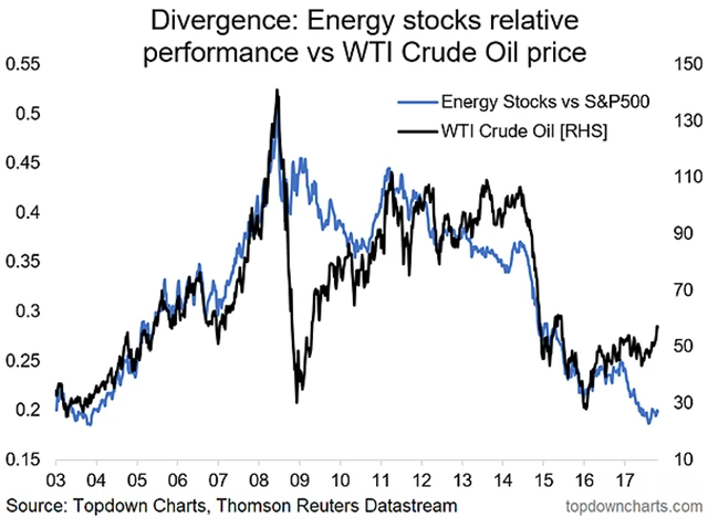 1. Obchodníci s ropou mají pravdu, takže by akcie firem z energetického sektoru měly mít tendenci dohnat svou výkonností vývoj ceny základní suroviny.