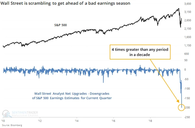 Problém u samotných čísel za poslední ti měsíce je ten, že jde ryze o pohled do zpětného zrcátka. I krátkodobé odhady a předpovědi budoucích zisků jsou přitom silně ovlivňovány nedávnou minulostí. Investoři a analytici zkrátka zareagovali na propad cen akcií snižováním doporučení prakticky na vše.
