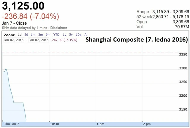 Index CSI300, který zahrnuje největší společnosti registrované na burzách v Šanghaji a Šen-čenu, klesl o 6,93 % na 3 294,38 bodu. Hlavní index šanghajské burzy Shanghai Composite se snížil o 7,04 % na 3 125 bodů.
