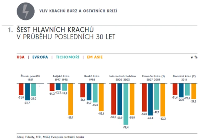 Je zajímavé, že ačkoli většina burzovních krachů začala v USA, daleko větší dopady to mělo na trhy v Evropě a Asii. A to i v případě, pokud vezmeme v úvahu vliv měnových kurzů. "Důvodem relativně větší stability akciového trhu v USA je s největší pravděpodobností jeho velikost a hloubka. Ty brání velkým cenovým výkyvům. Důvěra v silnou americkou ekonomiku, která je méně závislá na výkyvech poptávky ze zahraničí, často stabilizuje ceny i v dobách krize," říká Adam Lessing, ředitel Fidelity International pro Rakousko a východní Evropu.