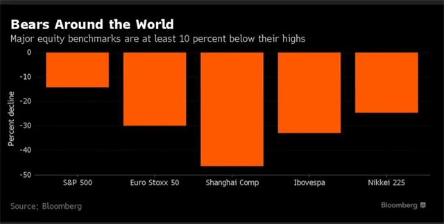 "Americké akcie zatím ztratily asi 15 % od svého vrcholu. Jejich ocenění je však nadále nadprůměrné a na základě historického srovnání slibuje spíše podprůměrné výnosy v následujících 7-10 letech. Nepřekvapilo by mě, kdyby akcie celkově ztratily i 50 % své hodnoty v příštích několika letech," napsal po vstupu MSCI All-Country indexu do medvědího trendu bývalý investiční bankéř a zakladatel webu Business Insider Henry Blodget. "To ale neznamená, že to tak bude. Sám akcie neprodávám a nikomu to ani neradím. Investoři by se ale měli psychicky připravit na horší časy," dodal.
