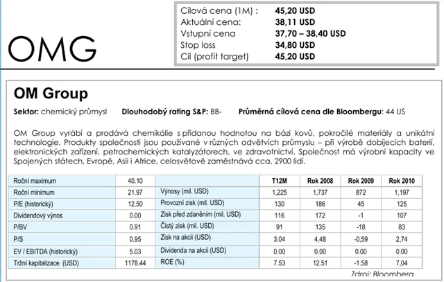 Akcie OM Group se jeví zajímavě fundamentálně i technicky. Společnost je prakticky bez dluhů, letos se počítá s obnovením výplaty dividendy. Technicky si OMG drží momentum, kurz je nad všemi klouzavými průměry. Po zhruba 7měsíční akumulaci očekáváme vyražení výše.