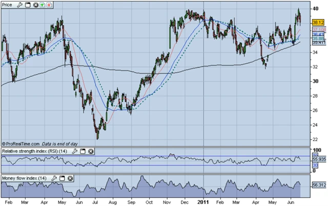 Iniciování dlouhé pozice je zajímavé v pásmu 37,70-38,40 USD. Po případném prolomení rezistence na 40 USD se jeví cílová úroveň technicky na 45,20 USD, ochranný stop je vhodné umístit na 34,80 USD.