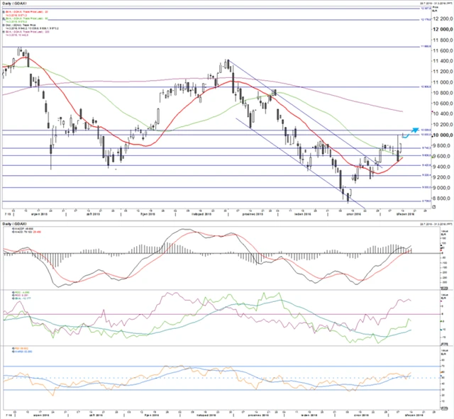 Celkově jsou technické indikátory příznivé. Pro následující dny očekáváme pozvolný růst nad hladinu 10 tisíc bodů.