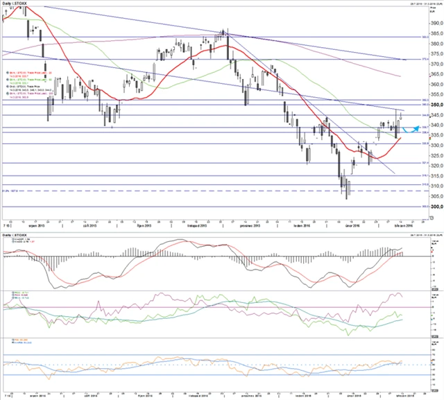 Technická analýza indexů S&P 500, DAX a STOXX Europe 600.