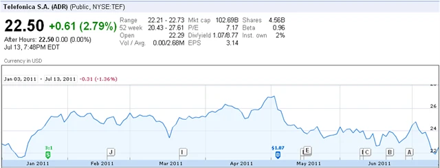 Zákazníků přibývá. V roce 2010 jich bylo přes čtvrt miliardy. Analytici očekávají, že by měla Telefónica vydělat zhruba 2,55 dolaru na akcii. Roční dividenda by pak byla téměř 2 dolary na akcii. To je oproti loňskému roku nárůst o 7 procent, slibuje tak výnos 8,5 procenta. Společnost v posledních letech zvýšila dividendu 5krát.