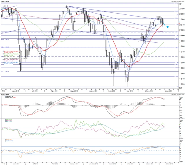 Technické indikátory se v posledních dnech stabilizovaly. V následujících dnech očekáváme, že se index bude obchodovat okolo 50denního klouzavého průměru (zelená křivka).